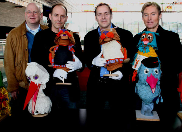Veel kleiner zijn ze, dan de meeste mensen verwachten. Voorzichtig worden ze op een tafel neergezet, door gehandschoende begeleiders. Meneer de Uil, juffrouw Ooievaar en de gebroeders Bever zijn de eerste dieren die hun opwachting maken. Andere bekende dieren volgen: de gezusters Hamster, ome Gerrit, Isadora Paradijsvogel en vele anderen. Het is voor het eerst dat de dieren weer samenzijn, sinds de opnamen van deze populaire serie zijn beëindigd. Aanleiding voor deze re ¼nie is de musical die er van de Fabeltjeskrant wordt gemaakt. Vandaag worden een aantal spelers voorgesteld, die de dieren nieuw leven in mogen blazen. Zij mogen samen met de dieren op de foto. Floris van Rooyen neemt de rol van Meneer de Uil op zich. Hij begroet de aanwezigen met een welbekend ‘Goedemiddag, beste kijkbuiskinderen&hellip’ Arie Cupé stelt zich voor als ome Gerrit en Sabine Beens blaast de beide gezusters Hamster nieuw leven in. Truus de Mier laat nog even op zich wachten: zij maakt zich nog zenuwachtig in de file. Mieke Dijkstra zal deze rol voor haar rekening nemen. Voor vandaag geeft zij een indruk van Fatima de Poes, een nieuwe bewoonster van het grote dierenbos. Wie deze rol uiteindelijk op zich gaat nemen is nog niet bekend.