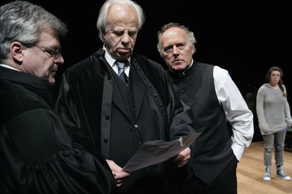 Er heerst een massahysterie die ervoor zorgt dat de gevangenissen vol zitten. De van hekserij beschuldigden worden niet geloofd als ze ontkennen. Ze moeten bekennen en terugkeren naar God. Anders zijn ze tegen de rechtbank die over hen oordeelt en daarmee dus voor de duivel. ‘U bent voor de rechtbank of u bent er tegen.’ Denkend aan de omgang van Amerika met het gevaar van de moslimextremisten in de huidige tijd, komt dat idee aardig bekend voor. Of neem de 'new born christians', een streng gelovige gemeenschap in Amerika dat steeds meer terrein wint. Tegenwoordig verzwijgen atheïsten daar hun overtuiging om aan een baan te komen. Later hoor ik iemand uit het publiek zeggen dat de spelers in de lange zwarte jassen hem doen denken aan mannen tijdens een dienst van de nieuw apostolische kerk.