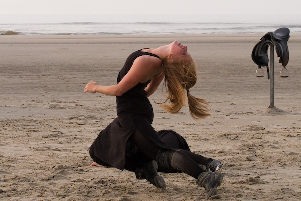 Een schitterende lokatie op het strand bij Kaap Hoorn, prachtig licht in een vallende avond en een uitverkochte voorstelling, wat wil je als choreograaf nog meer? Ik zou het niet weten. Jens van Daele ook niet hoewel hij eerder in de week zoveel regen op zijn dak kreeg dat de 'dansvloer' ter plekke helemaal onder water stond. Water dat niet wegliep. Daarom werd de plek voor de voorstelling een beetje opgeschoven naar een droger stuk.