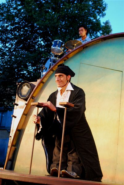De voorstelling start als twee muzikanten, een drummer en een violist (die later een groot evenwichtskunstenaar blijkt te zijn), uit een luikje aan de zijkant van de caravan kruipen en vervolgens boven op het dak plaatsnemen. Ze spelen een enthousiast stukje muziek. Niet veel later verschijnt, terwijl zich een rookgordijn vormt, een fraaie dame op hoge hakken, ook vanuit het kleine luikje, ten tonele. Ze gespt zich middels een lang koord vast aan de caravan en beweegt zich atletisch van links naar rechts aan de voorzijde van de caravan. Een fraai beeld. Als ze vervolgens al koorddansend op haar hoge hakken van de caravan naar de paardenkop verplaatst heeft komt er nóg een acteur tevoorschijn. De voorstelling is nu goed op gang. Er vormt zich een visueel spektakel met contrasten, metamorfoses, en gemengd met circustechnieken op de koord, acrobatie, evenwichtskunsten en de Chinese mast. Dit alles (inclusief de nodige humor) is vermengd met dans en theater waarbij de muziek de bindende factor vormt.
