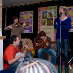 De cast bestaande uit Dorien Haan, Steyn de Leeuwe, Boy Ooteman, Robert de Sacadura Lima Orvalho, Sergio IJssel en Kim van Zeben liet vervolgens een paar liedjes uit de voorstelling horen. Het leuke is dat de acteurs ook zelf allerlei instrumenten bespelen: van kachelpijp tot keyboard en van drums tot didgeridoo. Als afsluiting van de perspresentatie was er natuurlijk de taart die door de kinderen met smaak werd verorberd.