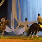 Behalve hogeschool-dressuur ook spektakulaire voltige-kunsten (dat je als publiek in eerste instantie niet begrijpt hoe het kan), een man met een lasso, een vuur-act en nog veel meer spektakulairs. Je zit eigenlijk constant op het puntje van je stoel.