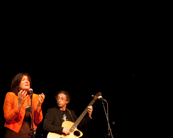 Met haar eerste nummer maakt ze een enorme indruk. Zonder haar eigen gitaar zingt ze "Leve". Met haar armen die ze langzaam uitspreid deelt ze de diepere betekenis van dit lied met de zaal. Dat lukt je niet met een gitaar tegen longen en buik aangedrukt. De toon is gezet. Bij haar derde lied, "Hier was mijn huis" geeft ze droom tips. Leg papier naast je bed en een pen die het doet. Blijf liggen als je wakker wordt, verroer je niet, dus ook niet krabben. Je droom herinneren zal steeds beter gaan. Achter een droom zit vaak nog een droom. Of een lied zoals deze over mijn huis. "Ik wou het liever nou", schreef ze naar aanleiding van haar dochter, als klein meisje in de tuin op de schommel. Die dochter is inmiddels ouder en woont in Israël. Daarom is het bijzonder dat vandaag haar dochter in de zaal aanwezig is.