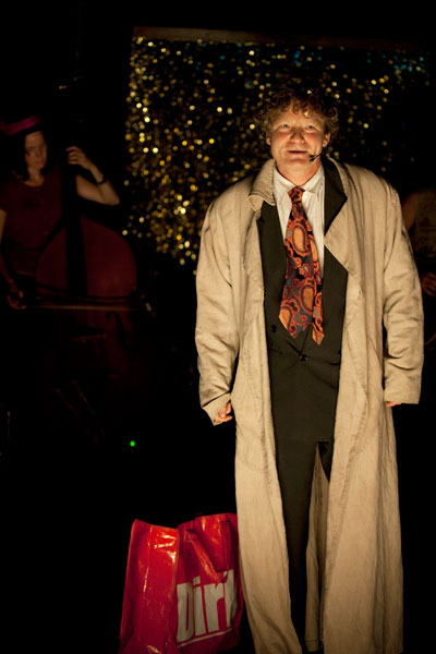 “Dit is de avond dat je van de crisis gaat houden”, belooft zanger/acteur Kees Scholten van het Volksoperahuis. En hij krijgt geen ongelijk, want er gebeurt veel moois in die circustent. Mede dankzij muzikale rariteitenmadam (zoals ze zichzelf noemt) Fay Lovsky. En dat crises vindingrijk maken, blijkt ook wel weer, want alles wat maar een beetje geluid maakt, wordt omgetoverd in een instrument in dit prachtige muziektheater. Een tas met scherven (van het spaarvarken dat stuk is) doet dienst als percussie en met een stoffer en blik kan je ook leuke ritmes maken. Verder passeren de theremin (met een buiksprekend varken), de zingende zaag en nog meer bijzondere instrumenten. En alsof dat nog niet genoeg is, speelt dat alles zich af te midden van een prachtig decor.