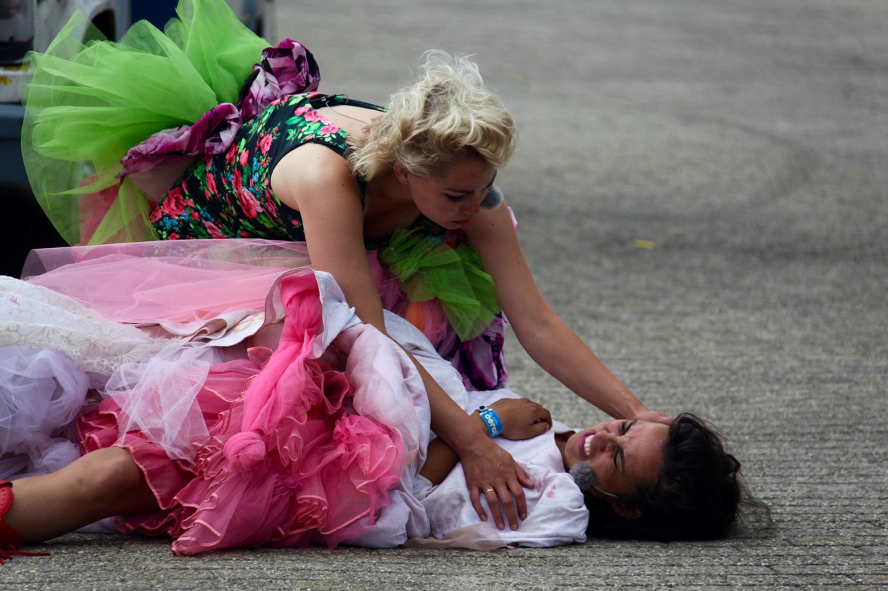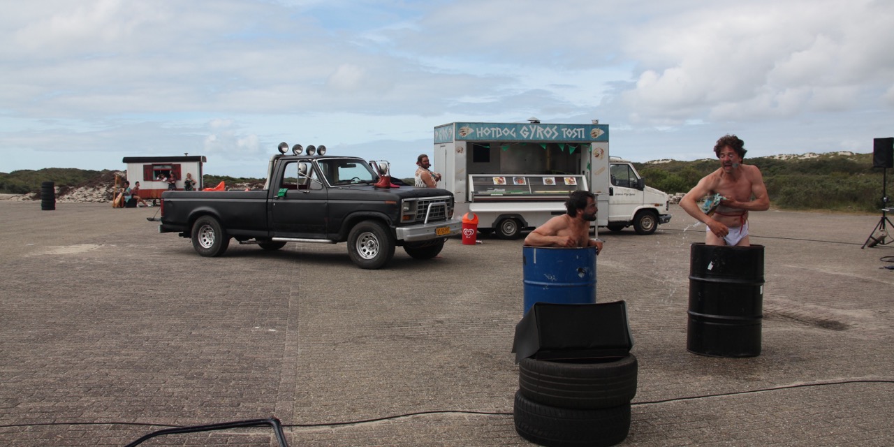 Ik durf het hier wel op te biechten: ik houd niet zo van Shakespeare. Te hoogdravend voor mij, te verafstaand van mijn werkelijkheid misschien. Desondanks heb ik voluit genoten van 'Much Ado About Nothing' van het Bostheater in samenwerking met het Noord Nederlands Toneel. Een spektakel van ruim anderhalf uur op de parkeerplaats bij Paal 8, met vele rond crossende vervoermiddelen, vreemde uitdossingen, verrassend goede muziek en zang en een zeven acteurs op dreef. Een theaterbewerking die eeuwen overbrugt. Een hilarische voorstelling die je iedere festivalganger gunt. Zelfs de meeuwen speelden mee.