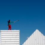 De zeecontainer staat op de parkeerplaats bij paal 8 alsof ie daar altijd heeft gestaan. Alleen de rijen lage tuinstoeltjes ervoor verraden dat een voorstelling op handen is, van Compagnie Furinkaï. Het publiek is verbaasd als de container langzaam opensplijt. Metalen draden spannen zich. Katrollen kraken. Knarsend maakt een driehoekig deel zich van de container los en kantelt omhoog. Twee rode benen lijken in het inwendige ervan te zweven. Als de driehoek verder kantelt onthult het in zijn binnenste een vrouw, gekleed in rood en groen. Haast in slow motion draait en wentelt zij zich bijna een uur in en op de container, die steeds van vorm verandert. De toeschouwers kijken met open mond naar dit fascinerende schouwspel van beweging en ruimte.