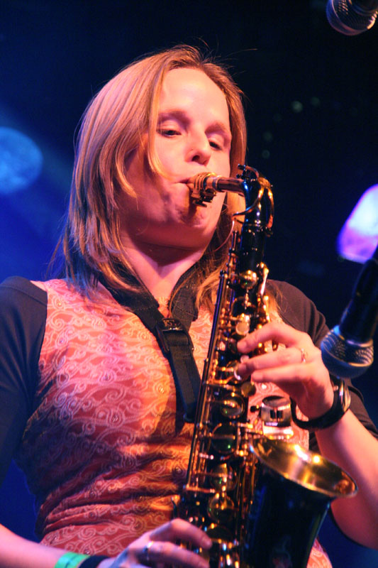 Na een kleine drie kwartier worden we verrast als Hollands trots Candy Dulfer het podium komt opgelopen om een partijtje mee te blazen. Sowieso geen misselijke verschijning en ook zij heeft door de jaren heen een hoop geleerd van de maestro. Candy en Maceo zijn al jaren goede maatjes en spelen altijd wel mee als gast op elkaars platen. Daarnaast maakt Candy ook net als Maceo met regelmaat deel uit van de band van Prince. Ze zal gedurende het optreden nog een keer terugkomen om mee te blazen op I’m Gonna Teach You van de laatste plaat.