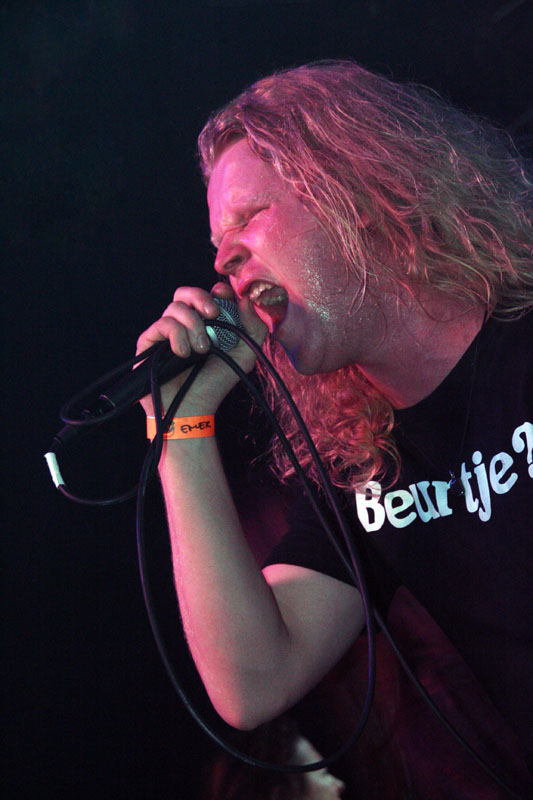 Overflow-Error, allen tussen de 16 en de 18 jaar, en heeft duidelijk veel gerepeteerd sinds de voorronde. De melodieuze Hardrock / powermetal wordt met overtuiging en veel plezier gespeeld. De nummers zijn sterk, steken goed in elkaar, strakke rifs, leuke breaks, kortom lekkere metal. Muzikaal loopt het vanavond. Zangeres Sarah heeft duidelijk meer geoefend, maar desondanks blijft haar stem vrij monotoon en met momenten onzuiver. Haar podiumpresentatie daarentegen is zichtbaar vooruitgegaan, ze staat met veel meer overtuiging op het podium. Leuk te zien dat deze band in een dergelijk korte tijd veel winst heeft kunnen boeken. Ook het in groten getale meegebrachte publiek weet de set te waarderen en stemmen massaal op hun band.