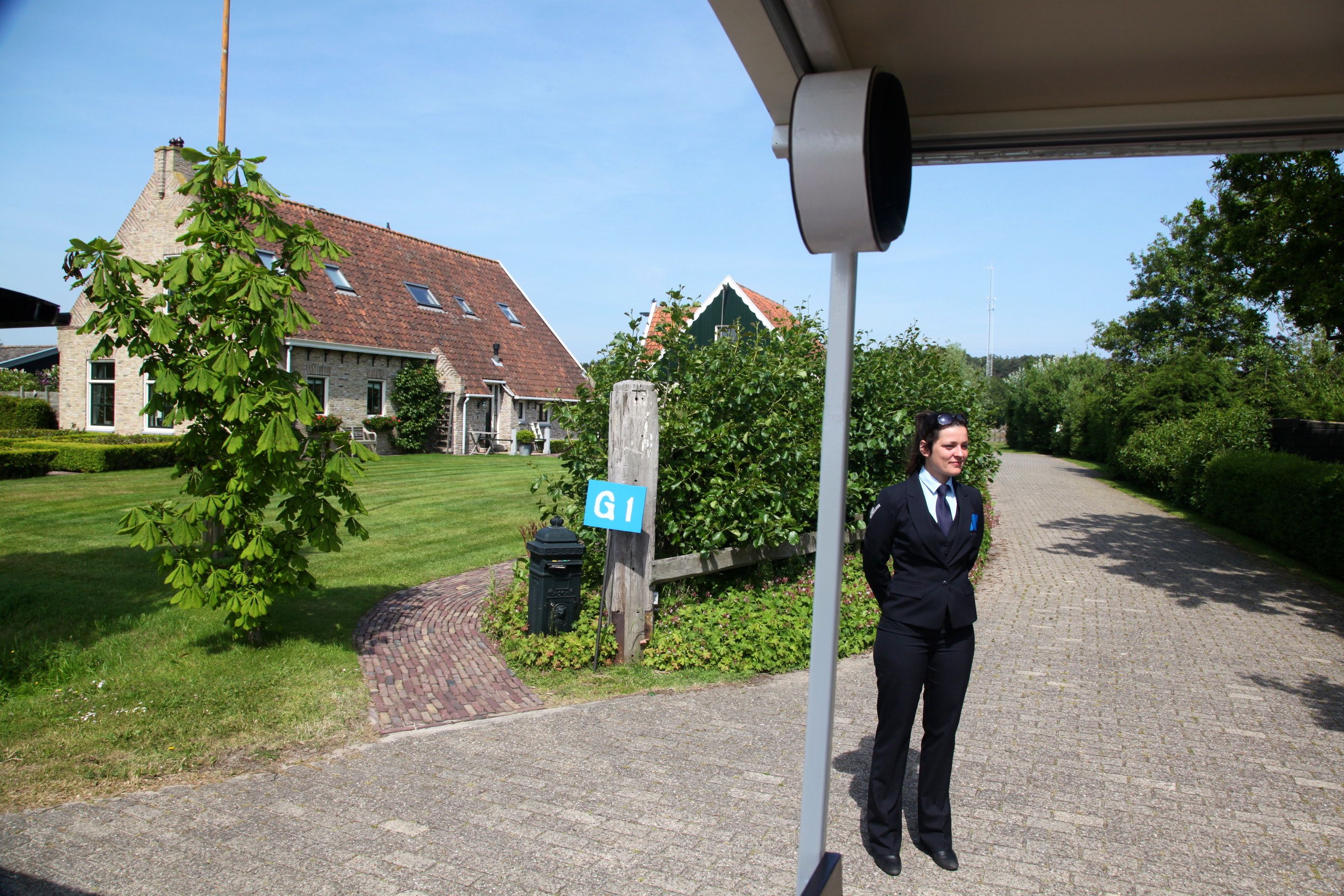 Kijk, dat is leuk. Je arriveert nog gewoon met je eigen clubje festivalgangers, in mijn geval met zijn drieën, op het terras van Zonneweelde. Daar wacht een suppoost in een net pak je op en zet een gele streep op je kaartje. Vanaf nu ben je lid van groep Geel. Om half 12 mag je in de kar stappen die je naar het begin van de route brengt. Petje op: ‘Gluurder’. Maar wie gluurt er eigenlijk naar wie? We zitten zelf ook te kijk.