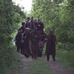 We kijken wat ongerust omhoog. Zullen we het droog houden tijdens de voorstelling van Invisible Walls in het Geitenpark? De regisseur stelt ons gerust, hij heeft er alle vertrouwen in dat het mooi weer blijft. In afwachting vanwat komen gaat, wachten we nog even wat in het gras naast het pad. We krijgen een leeg Kosovaars paspoort met het verzoek dit in te vullen met onze gegevens en nationaliteit.