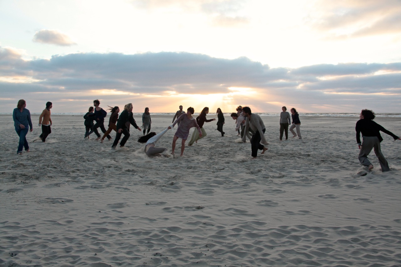 Op de achtergrond de zee. Van alle kanten komen de dansers van Compania Sharon Fridman over Strand West langzaam dichterbij om gezamenlijk in een wanhopige cirkel rond te rennen. Twintig dansers, zes van hen professioneel, de anderen vrijwillige deelnemers aan de dansworkshops, bewegen als levende organismen gezamenlijk over het strand voor de tribune. Op de klanken van speciaal hiervoor gecomponeerde muziek, een soundscape van heartbeats, cello en gitaarrifs, een enkele maal ontaardend in herkenbare klanken, slierten ze op en over elkaar. Soms losstaand, meewuivend in de wind, dan weer samenrollend of elkaar voortsleurend. De zes proberen zich omhoog te werken uit de kluwen, vallen en bieden elkaar steun. Een boeiend schouwspel dat soms wanhopig overkomt en dan weer rustgevend, meebewegend met getijden en wind.