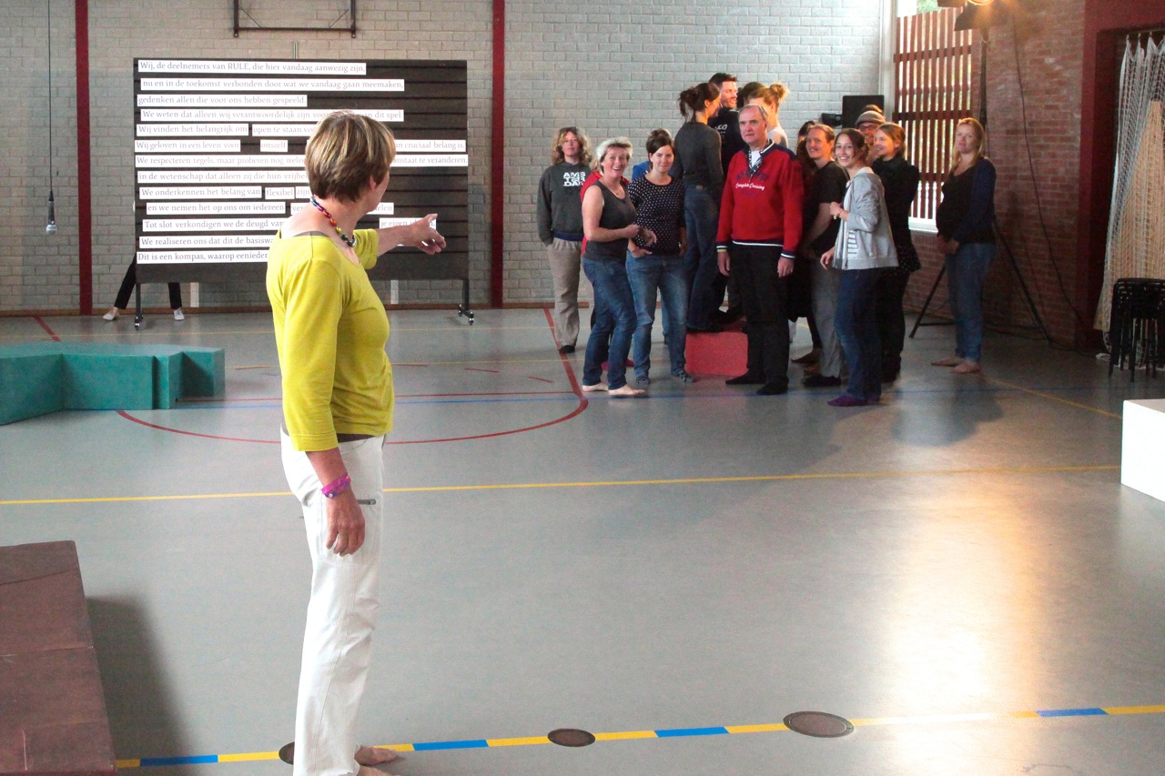 Theatermaakster Emke Idema houdt ervan om grenzen op te zoeken. In de gymzaal van het dorpshuis de Stoek in Hoorn zet ze het publiek in de voorstelling 'Rule' letterlijk centraal en legt ze hen als spelleidster het ene na het andere dilemma voor. "Ik wil graag dat het publiek actief participeert, in plaats van dat het in de stoel achteruit hangt. Zo is de betrokkenheid groter."