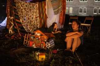Natuurlijk zijn er ook minder vrolijke voorstellingen op Oerol. 'Schotland' van de jonge Nieuwkomers van Orkater is daar een van. Een rauw beklemmend stuk, op Oerol in première gegaan, over twee broers wiens hartstocht voor een meisje ontaardt in intimidatie en machtsmisbruik. "Ik houd er wel van om eerlijk te zijn over sommige driften en gedachten. We zijn dagelijks zo netjes; in mijn fantasie gebeuren wel andere dingen", vertelt de jonge schrijfster/actrice Lore Dijkman. Ze kijkt me stralend aan.