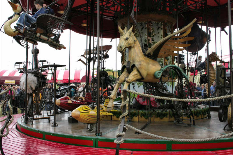 Een ander ding dat zorgt dat je je op de Westerkeyn niet verveelt is de draaimolen. Een prachtige antiek exemplaar waarvan je hierboven een foto ziet. Het is echt om je ogen helemaal uit te kijken want al die dieren en figuren bewegen ook nog, de bolle vis blaast bellen en de stoommachine blaast stoom uit.